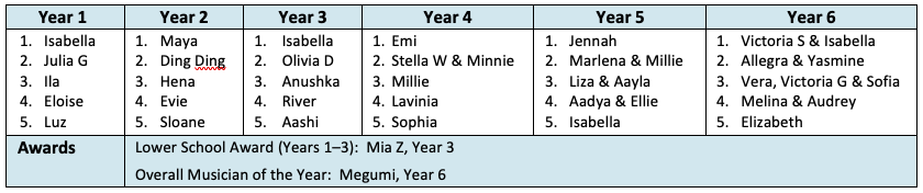 Each year group was awarded five medals. The overall winner from each year group performed in our winners’ concert on Tuesday morning to the whole school, which was an absolute treat and spectacular display of musicianship.