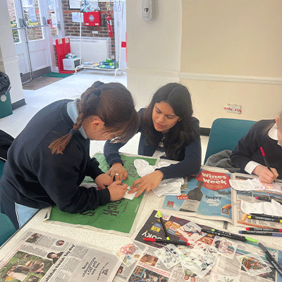 On Monday, the girls in 5S started the week with a visit from TimeGivers. After an initial presentation, the girls walked over to Ixworth Place, where they threw themselves into a creative challenge: designing vibrant socks and heartfelt cards to be donated to Chelsea Methodist Church.